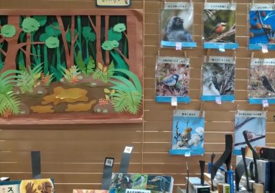 右(→):「沼る」。ここでは、ある対象にどっぷりハマり、抜け出せなくなるほど夢中になっているという状態にかけて、2か月に1回のペースで、テーマを決め、特集展示をしました。この時は、「鳥」ですね。