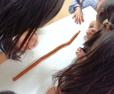 みよちゃんのアイデアはどこから生まれてくるのでしょう。アイデアだけじゃなく、テーマが決まったら、そのテーマをより、子どもたちがわかるように、関連する実演をしたり、現物を見せてくれたりと、いつでも子どもたちの興味や関心があつまる工夫がありました。みよちゃん!いつもありがとう!