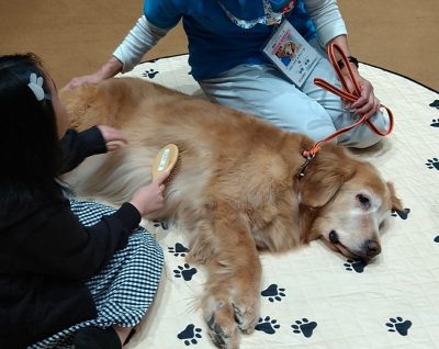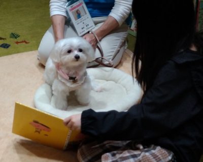4回目になるセラピー犬に読み聞かせをするイベントです。みんな、どんな本を読もうかな~といろいろ考えて準備してきてくれます。読み聞かせが終わったらふれあいタイム。